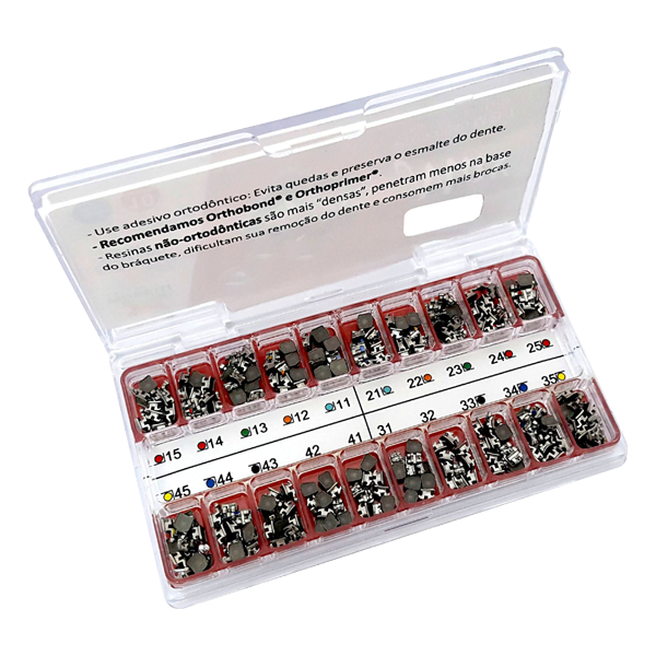Morelli Max M.B.T. Brackets Kit has an anatomical profile design and rounded surface hook that promotes mucosal accommodation providing comfort to the patient. Low friction and rounded edges for smoother sliding of orthodontic wire. The design bases promote the adaptation of brackets to the cervical mesial and distal occlusal curvatures of the tooth surface. Round with sandblasted surface framed in peripheral containment with occlusal opening for the exit of excess resin pins.