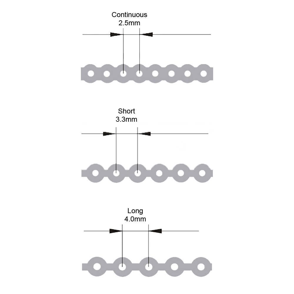 Elastics Gap: Continuous 2.5mm / Short 3.3mm / Long 4.0mm
